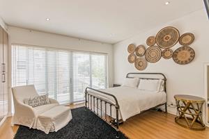 3 bedrooms with laminate wood floors, 2 bathrooms (main en suite) plus guest