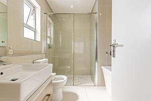 Enjoyed by a sun-filled lounge and dining-area with double glazed stacking doors opening onto a private courtyard with landscaped garden and splash pool.