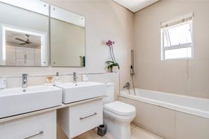 3 Spacious bedrooms with laminate wood flooring and built-in cupboards. 3 en suite bathrooms plus a Separate guest toilet.