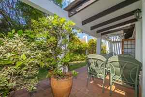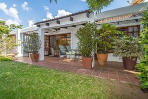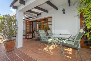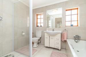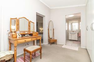 The main bedroom is generously sized and boasts a walk-in dressing area with plenty of built-in cupboards along with a full en-suite bathroom. This tranquil retreat also opens onto the secluded garden, offering a peaceful escape.