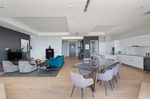 Boasting 266 sqm of meticulously designed interior space, the penthouse features a stunning 68 sqm terrace accessible directly from the main living area, perfect for enjoying the panoramic views and outdoor relaxation. The property includes three en-suite bedrooms, with the versatility of the third bedroom allowing it to function as a home office, complete with a sliding glass door for added privacy.