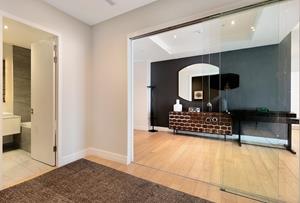 Notable features of this elegant penthouse include two secure underground parking spaces, a 7 sqm storeroom for added convenience, and impeccable finishes such as Smeg appliances, Grohe taps, and Villeroy & Boch sanitary ware. Additional comforts include heated towel rails and efficient air conditioning throughout the unit.