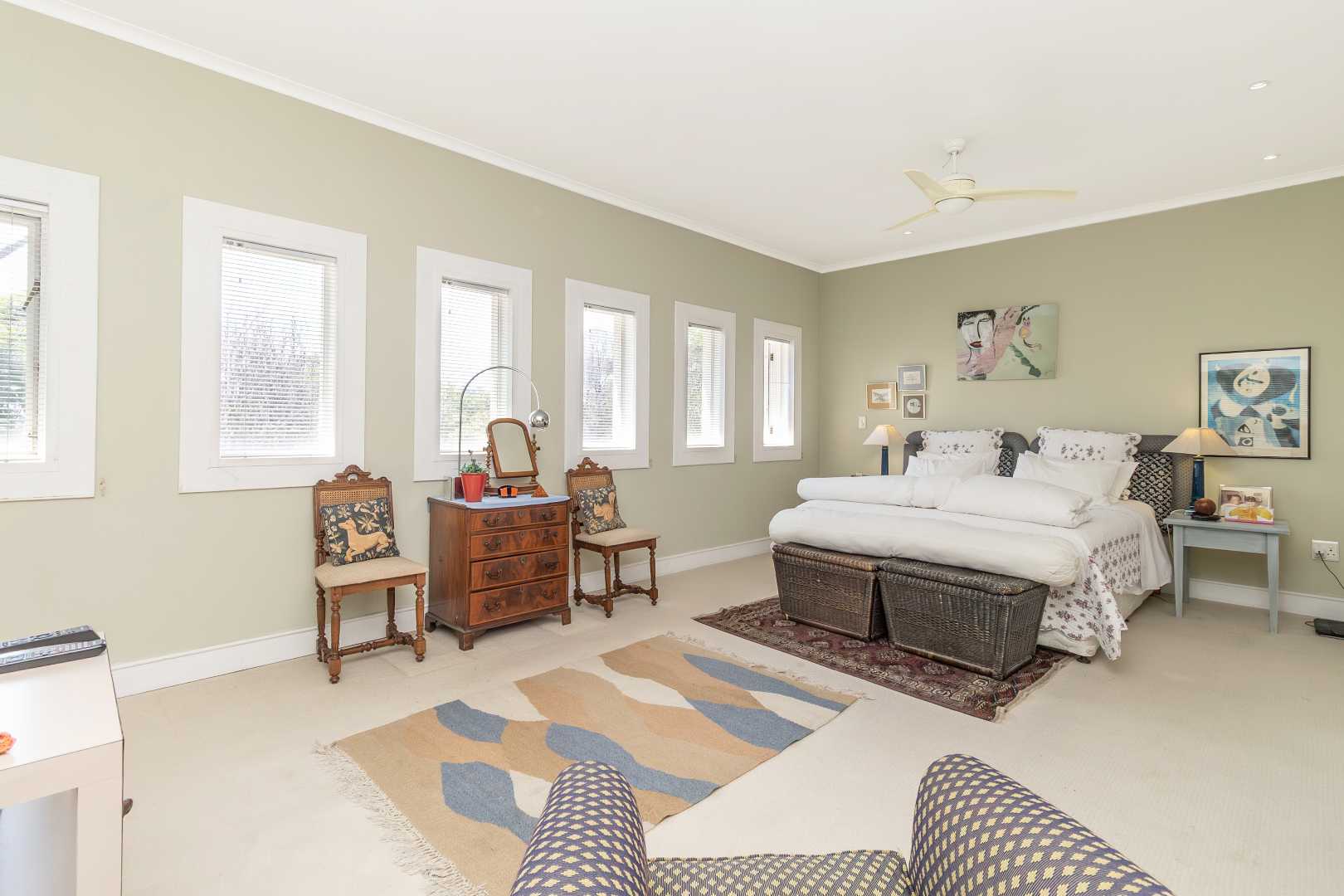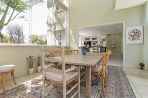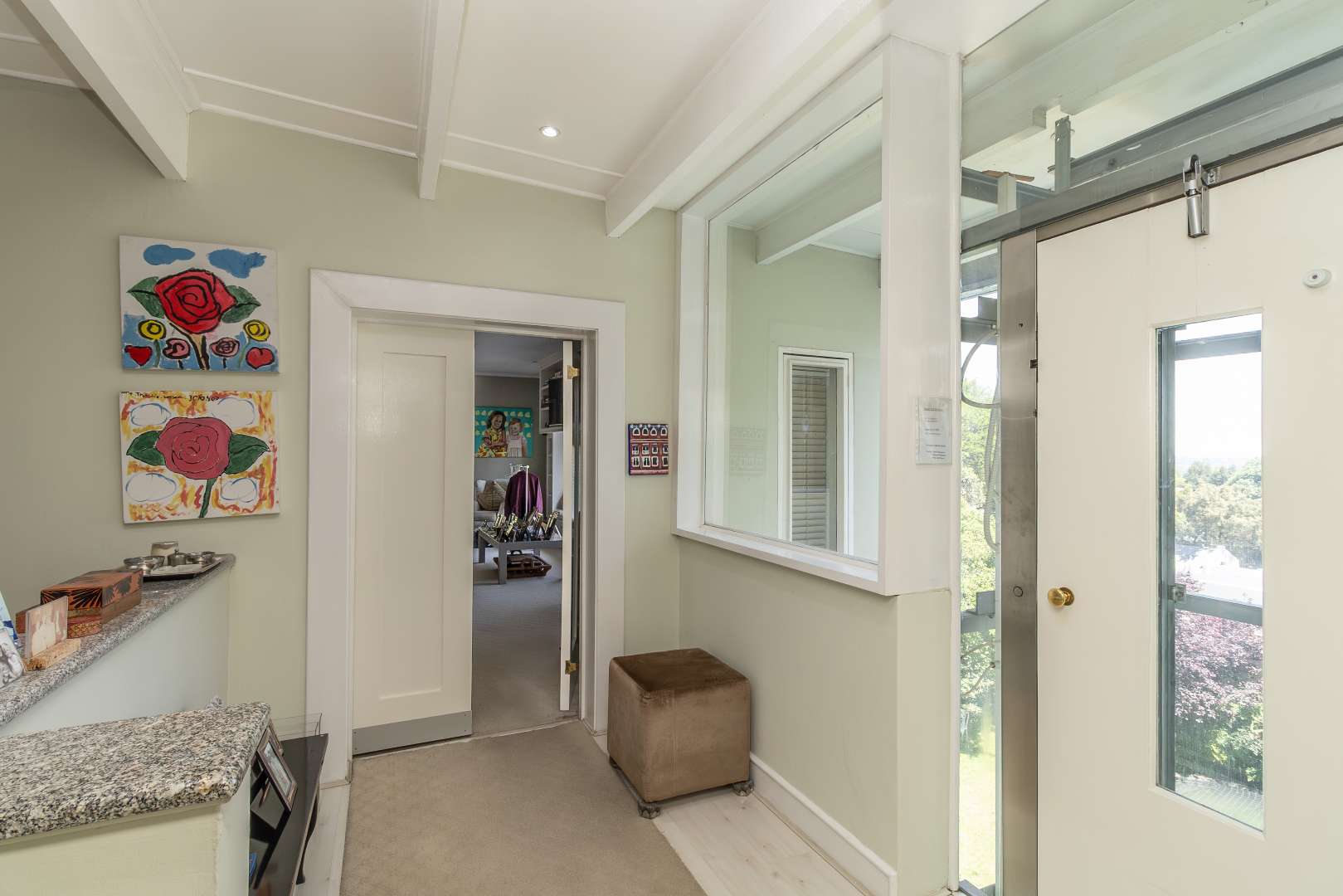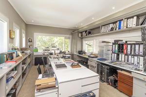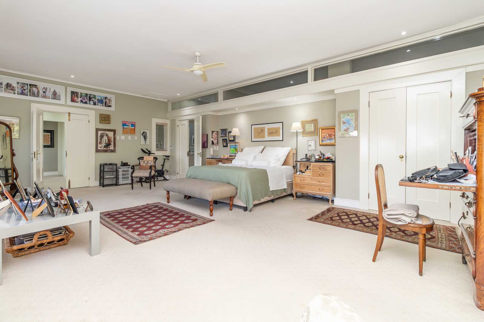 The ground floor features a self-contained three-bedroom, two-bathroom apartment or staff suite, a work-from-home office, and garage space accommodating up to six vehicles. The reception and living areas, as well as the upstairs bedrooms and bathrooms, are equipped with Hydroflow underfloor heating powered by solar and heat pumps.