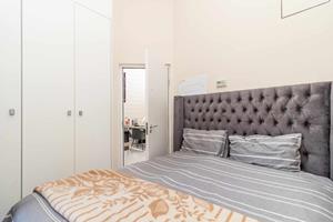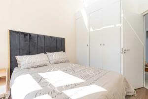 The apartment has two good-sized, light, and sunny bedrooms with modern built-in cupboards and a full bathroom with a bathtub, shower, toilet, and basin.