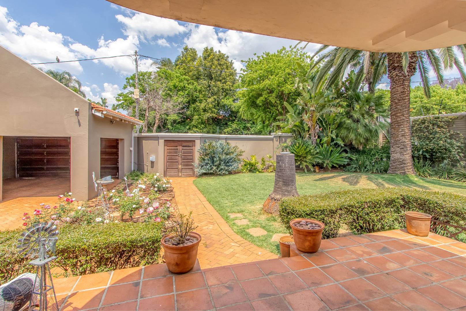 Outbuildings offer domestic accommodation with kitchenette and bathroom. Plus additional storeroom. Back-up water supply and rainwater harvesting. Fitted electricity inverter and Egoli gas supply. Double automated garage with parking for 5 vehicles.