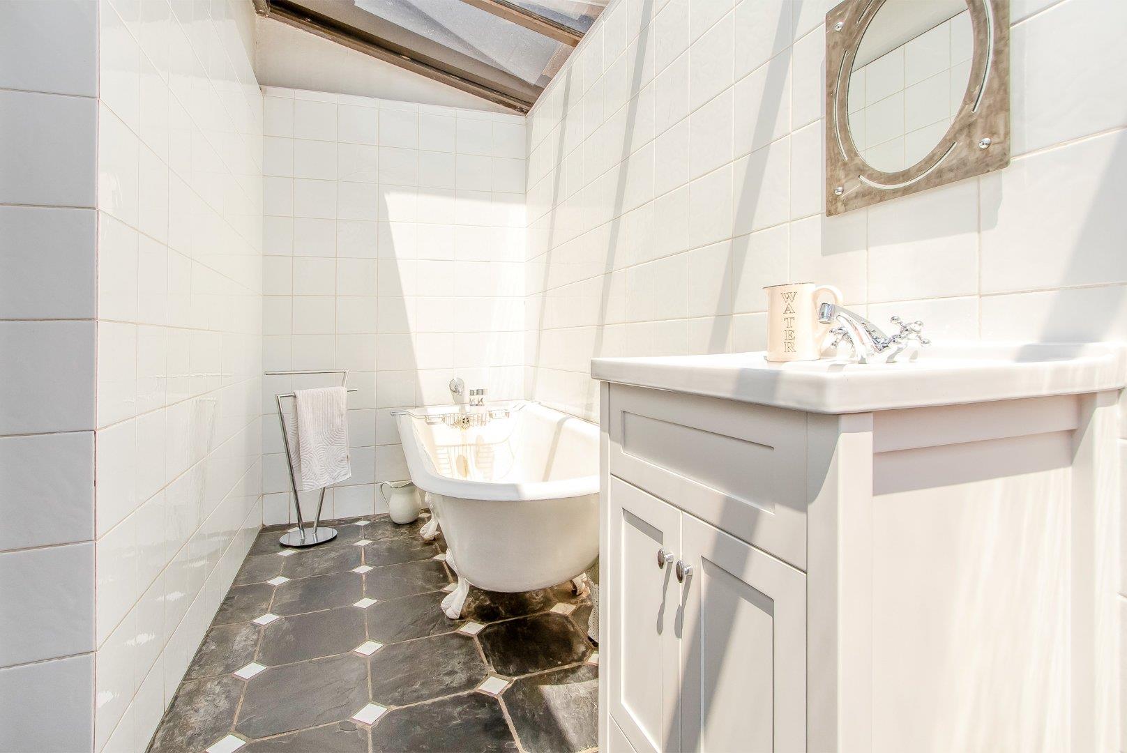 3 spacious bedrooms and 2 tiled bathrooms.(The main en suite featured by the elegance of a "Ball and Claw" bath and glass ceiling.