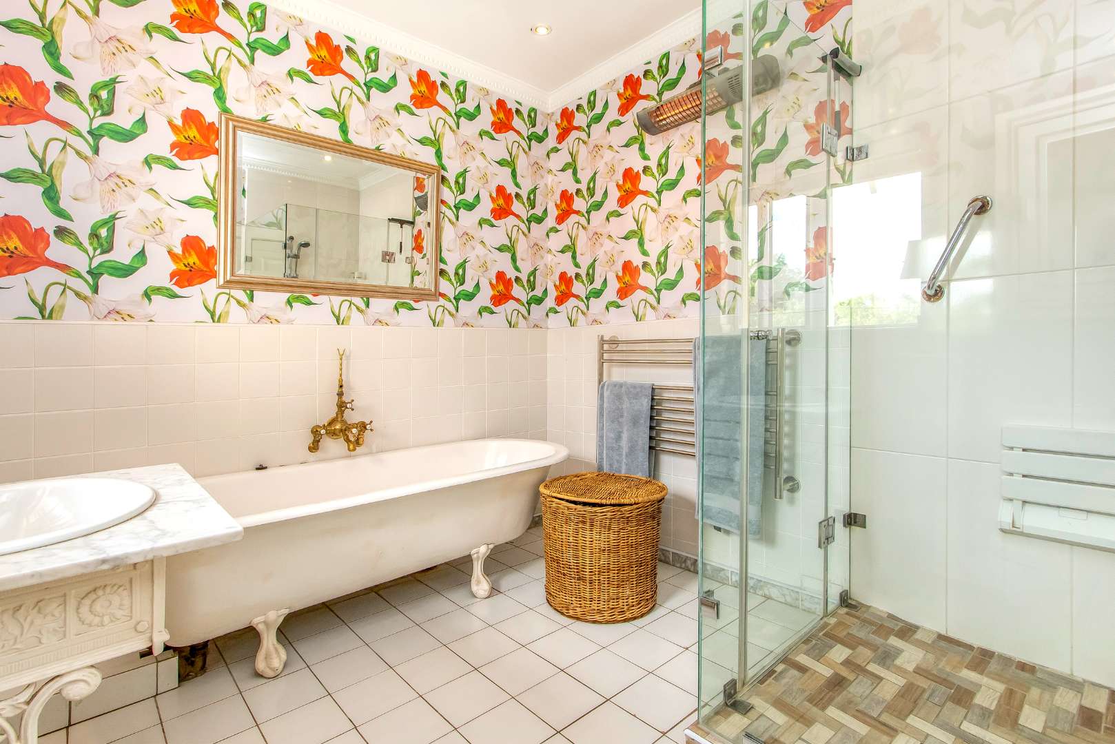 3 double sized bedrooms with built in cupboards and fitted air-conditioning. 3 en suite bathrooms with high quality finishes and heated towel rails.
