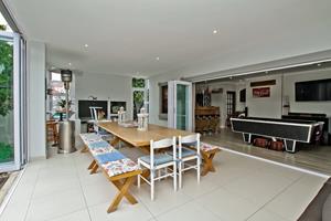 Enormous lounge with a fire place and formal dining room with wine cellar. Enclosed entertainers patio with separate bar and braai looks out onto sparkling pool and well-manicured garden.