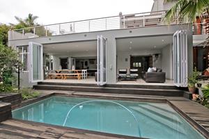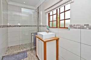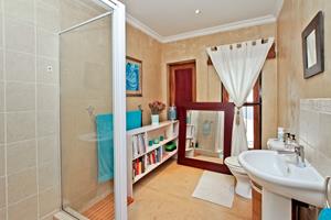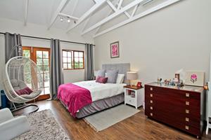 This contemporary double storey 4 bedroom, 4.5 bathroom home (mes) offers everything the large family could want. The large upstairs main bedroom with exposed white trusses and plenty of cupboard space flows into an exquisite en-suite bathroom with large double shower. Two further bedrooms also with exposed white trusses and bathrooms are on the top floor. These bedrooms have a wrap around balcony with fantastic views. A fourth downstairs bedroom completes the sleeping quarters.