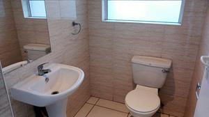 The home boasts four spacious bedrooms, all with laminated flooring and built-in cupboards. The main bedroom is a private retreat, offering a full en-suite bathroom for your convenience. An additional shared bathroom and a guest toilet ensure ample facilities for family and guests alike. A large walk-in linen cupboard provides loads of storage.