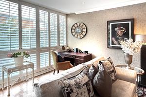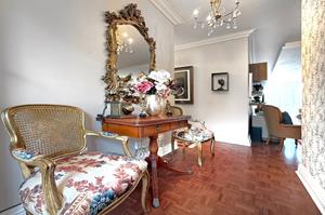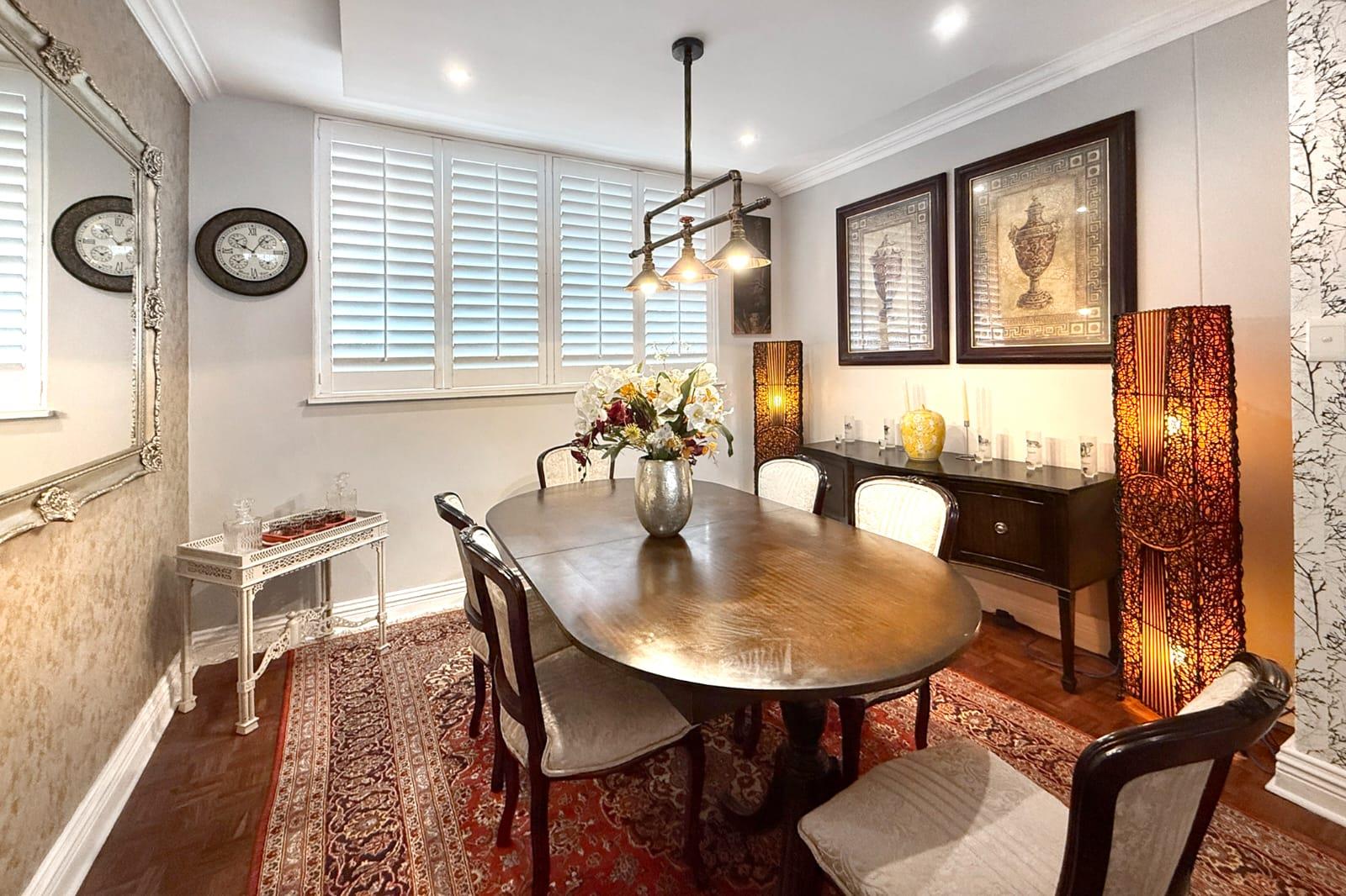 As you step through the front porch into the inviting entrance hall, you'll immediately notice the bright and welcoming atmosphere. The apartment boasts gorgeous parquet flooring and sophisticated plantation shutters throughout, adding a touch of timeless charm to the modern setting.