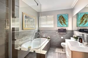 This exquisite apartment offers three spacious bedrooms, including a main bedroom with an en-suite modern bathroom, plus an additional contemporary bathroom to serve the other bedrooms. All spaces are designed to provide comfort and tranquility.