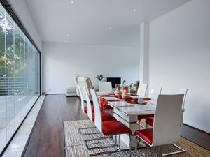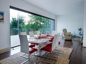 The open-plan chef's kitchen is a culinary dream, offering both gas and electric appliance options, and is complemented by Caesarstone countertops. For dining, the property includes two elegant dining areas that promise memorable meals with family and friends.