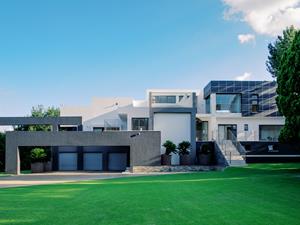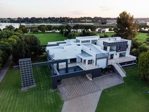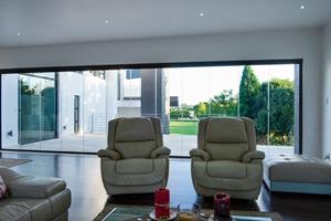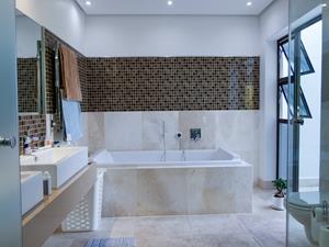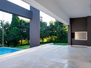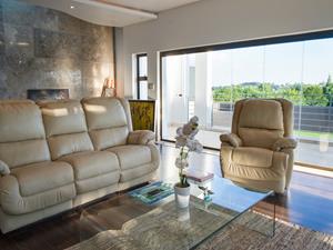 Step inside to find a natural flow of light illuminating the open spaces, with panoramic stackable doors that seamlessly integrate indoor and outdoor living. The home includes three lounges that open up to entertainer's patios equipped with stainless steel braais, perfect for hosting gatherings in style.