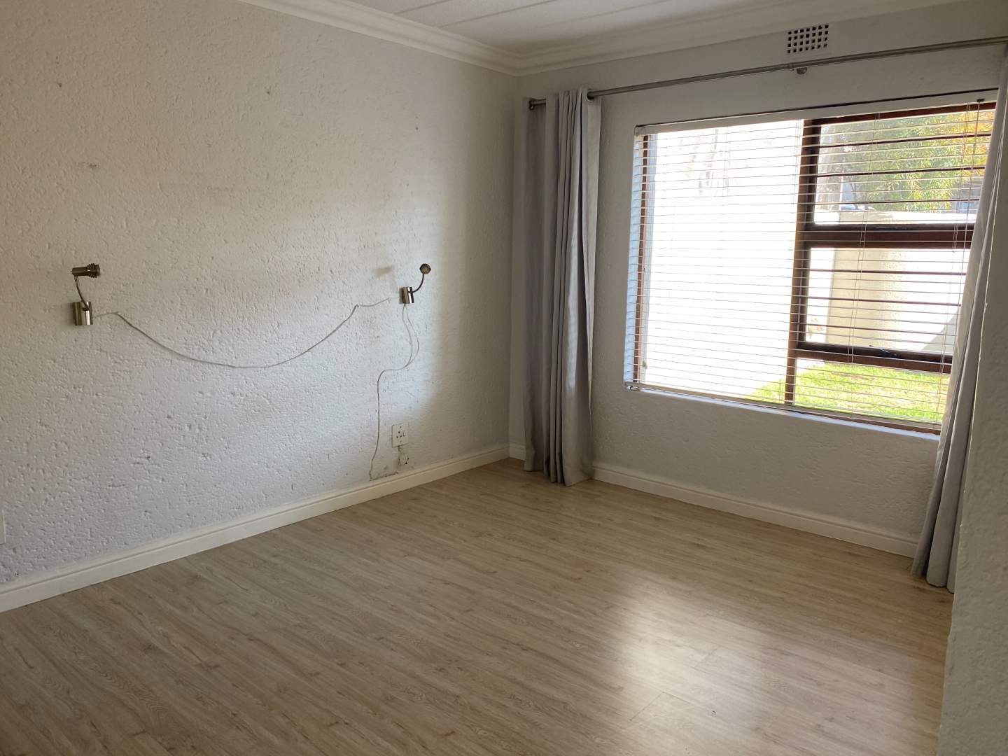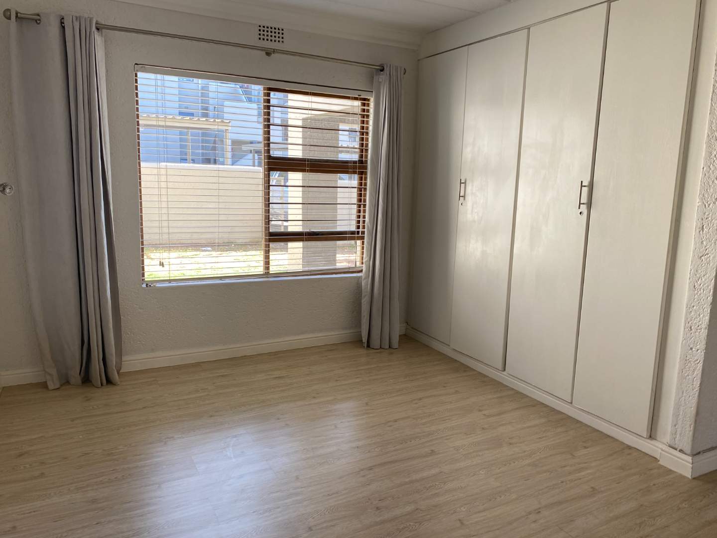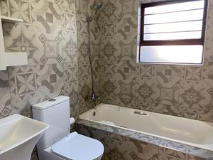 Each of the three generously sized bedrooms boasts laminate flooring and abundant cupboard space, ensuring both style and practicality. The master bedroom comes complete with an en-suite bathroom featuring a luxurious bath, while the second bathroom offers a refreshing shower. An extra linen cupboard ensures you have all the storage you need.