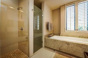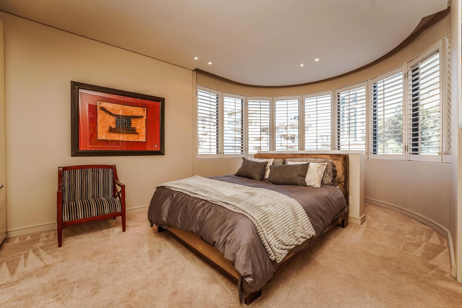 - The second bedroom is spacious with ample cupboards and an en-suite bathroom with a shower, loo, and basin.