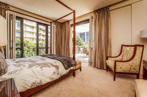 -A large sunny main bedroom with loads of cupboard space, a door leading out on the balcony and q neat full en-suite bathroom.