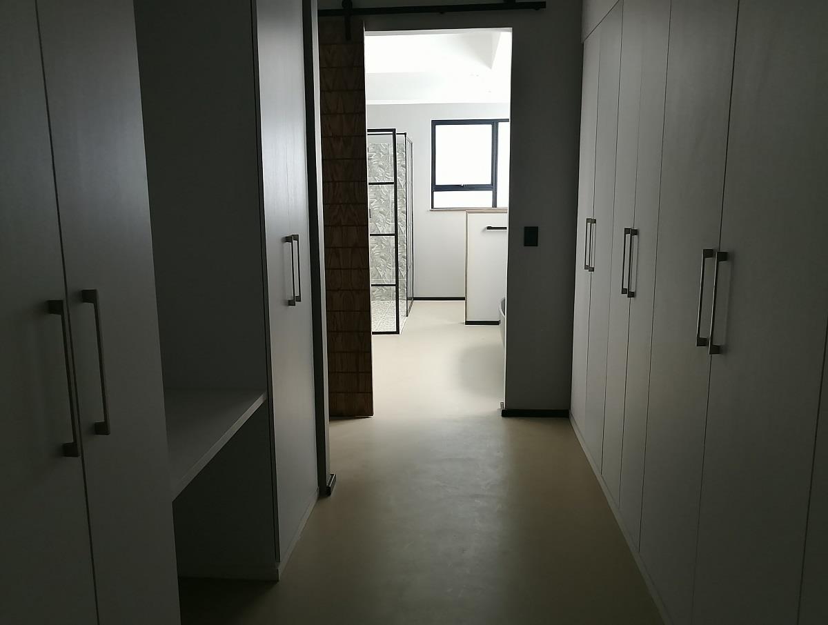 Downstairs: As you step through the entrance, you'll be greeted by an open-plan living area that seamlessly integrates the kitchen, dining room, and lounge. The space is perfect for entertaining, with folding doors that open to a charming patio and braai area, allowing for effortless indoor-outdoor living. A guest cloakroom on this level adds to the convenience.