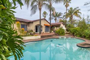 For those who love to entertain, the property features an expansive covered patio, ideal for hosting gatherings year-round. Palm trees surround the large pool enhancing the outdoor experience,