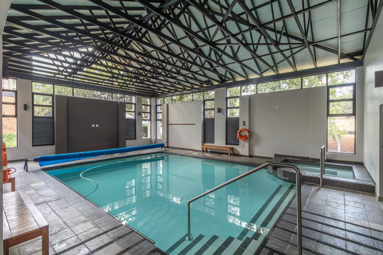 Embrace the natural beauty of the estate with its well-maintained green areas, walking trails, and a wetland area complete with a bird hide. For added convenience, a shuttle service is available for residents.