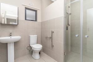The light-filled bedroom is generously proportioned and features built-in cupboards for ample storage. The bathroom is equipped with a large shower, complete with a built-in seat for comfort and safety. For added convenience, each floor includes clothes drying yards.