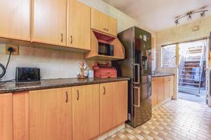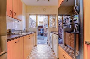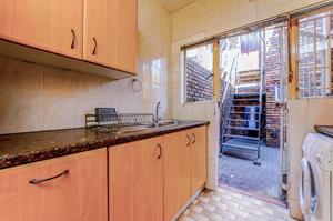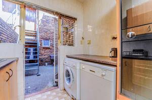 The eat-in kitchen has ample cupboard space, a ceramic hob, double eye-level oven, space for a single fridge/freezer and a door to the courtyard. A scullery/laundry section offers additional convenience with a double sink, washing machine, and dishwasher. Under-stair storage provides extra room for your belongings.