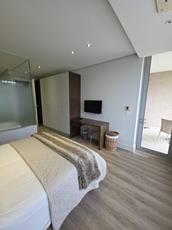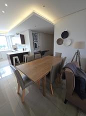 The Magnificent Lounge a Dining area are Furnished to the Highest Standards for your comfort. Lounge has a Large Smart TV. The Lounge opens onto a large Balcony with Magnificent Views of Mushroom Park