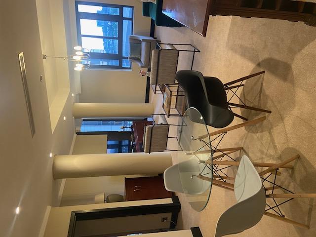 Spacious open plan Lounge and Dining Room tastefully furnished. Lounge which opens onto Balcony with Stunning Views of the Sandton Skyline.