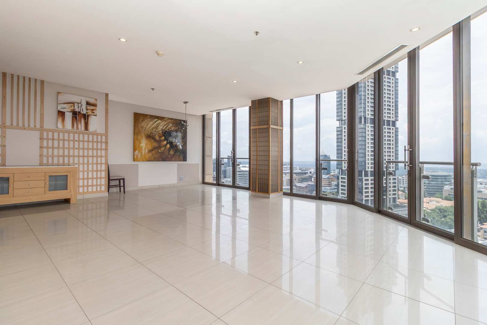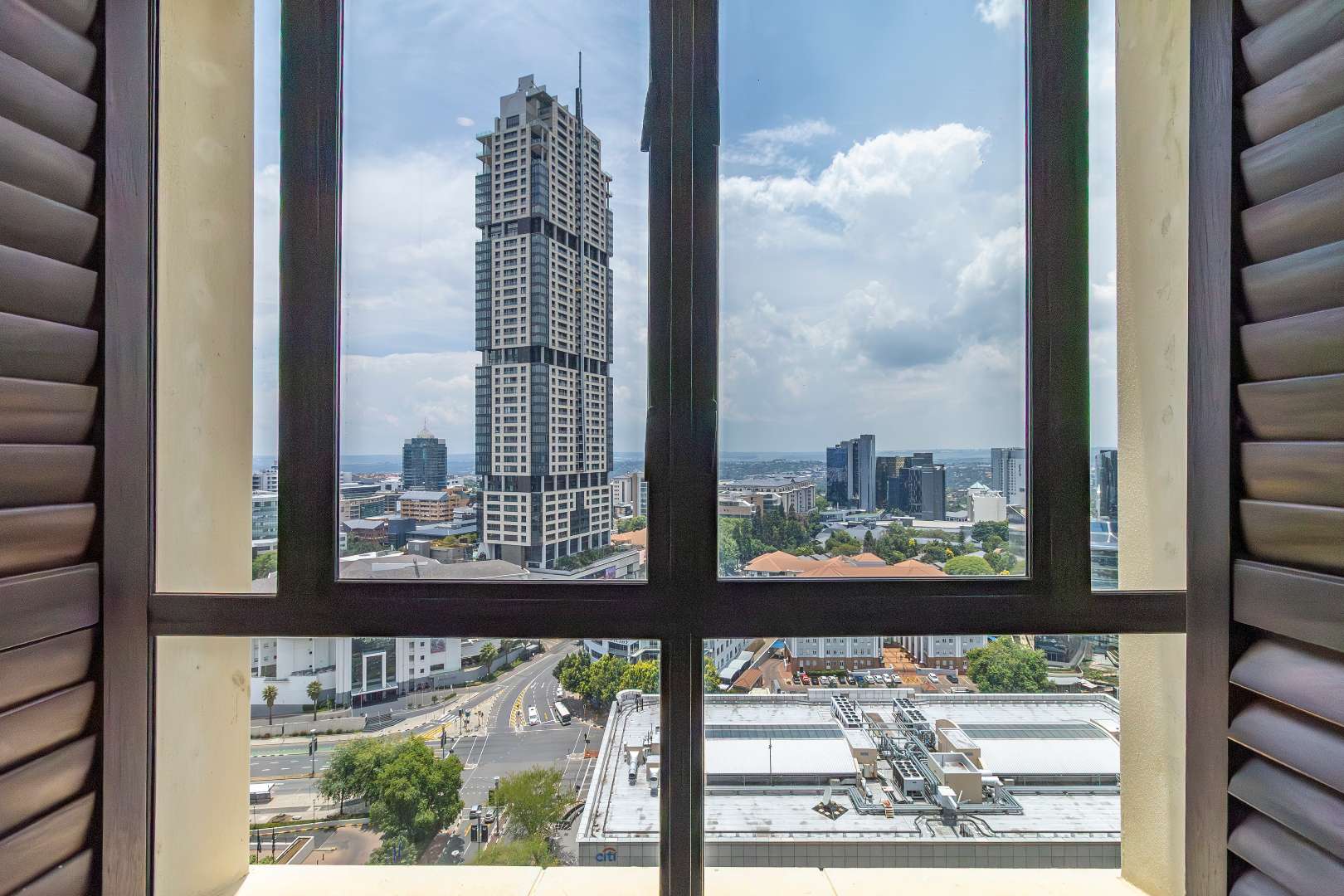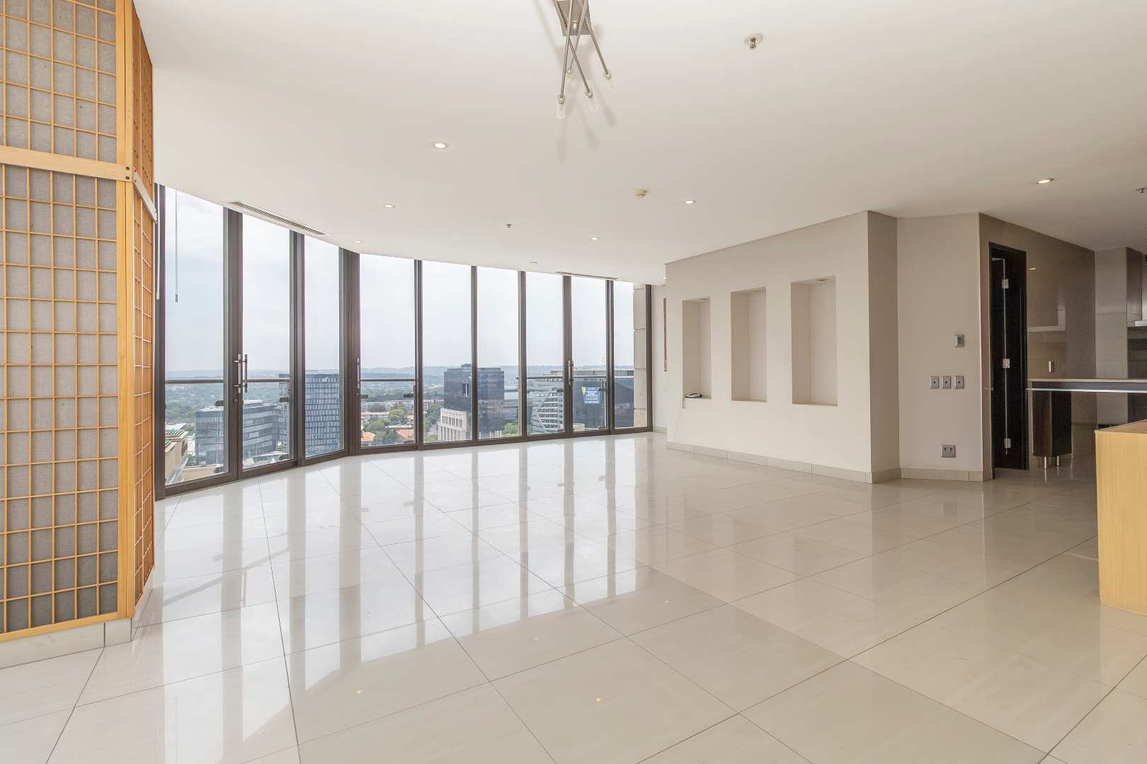 Located on the 18th floor, this bright and spacious two-bedroom, two-bathroom corner apartment boasts some of the finest views in Sandton. Flooded with natural light, the modern design seamlessly integrates large living areas with high-end finishes, including floor-to-ceiling curved glass windows that offer stunning 180-degree views of Sandton's skyline.