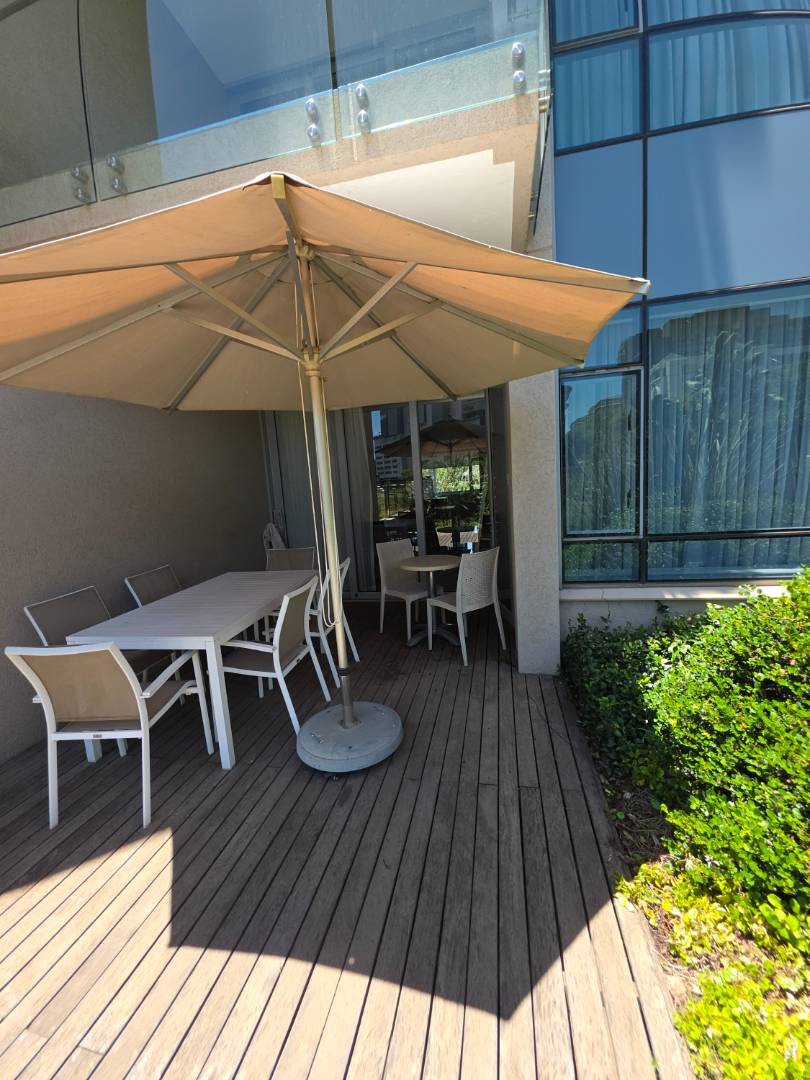 The Lounge and Main Bedroom opens onto a Stupendous ,Private , Wooden Decked Patio which has a well maintained Small Garden . The ideal space for a Sundowner after a hard day at the office.