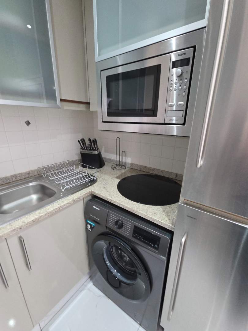 This Fully Furnished 1 Bed 1 Bath (en suite) Apartment in this Famous Landmark in Sandton Central, designed to International Standards ticks all the boxes and is a Dream Apartment for the Discerning Executive / Corporate Client.